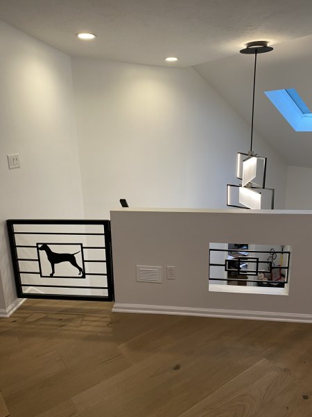 Rebecca and Ryan were absolutely thrilled with the final result and shared that they loved how the custom ironwork elevated the overall design of their home. These interior iron panels, custom iron features, handrails, and dog gate now serve as focal points, adding both character and modern elegance to the space.